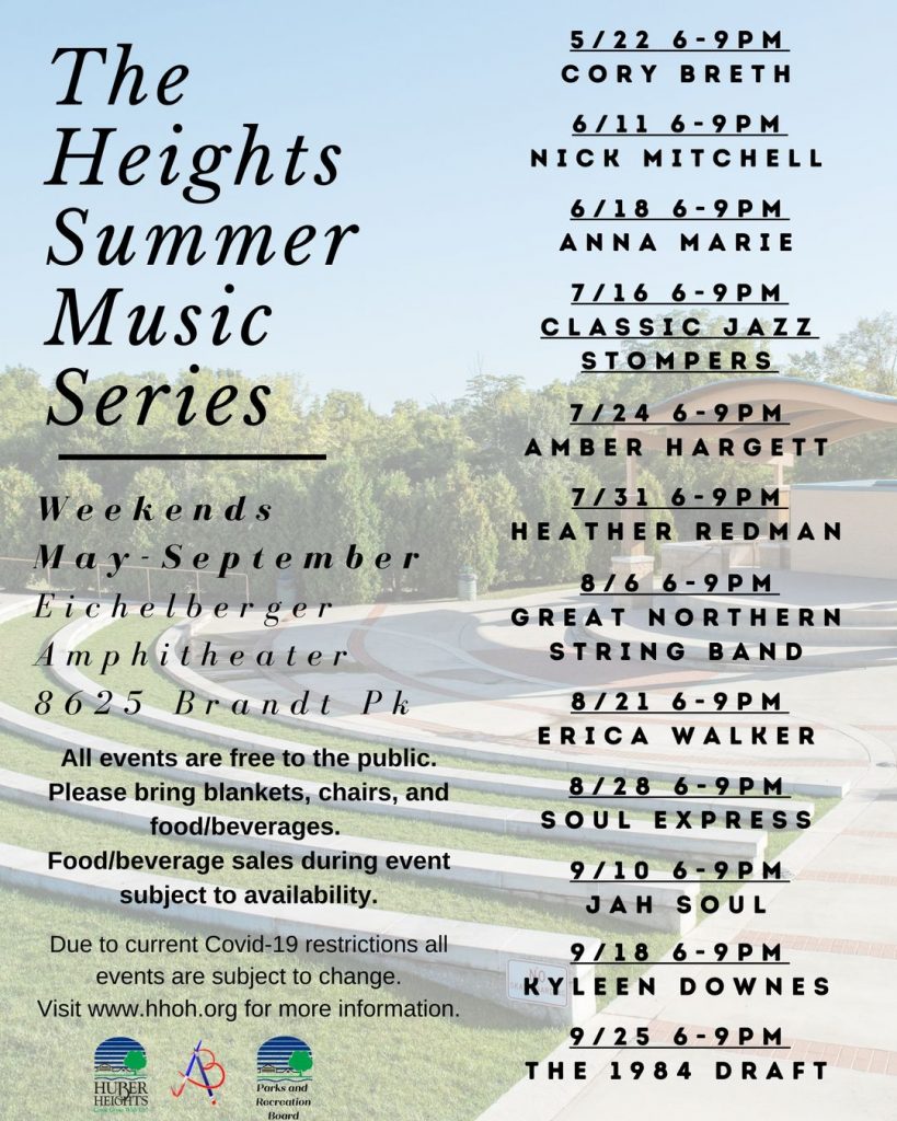 Free summer concerts all summer long. There are food trucks at each concert as well so come out for a great evening at the Eichelberger Amphitheater at the Heights!