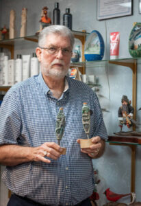 After 6 years of practice with different types of carvings for others, Jim began to design his own pieces for others to carve. Since then, he has made many rough outs of various shapes and sizes. Jim continues to practice wood carving in his studio at the Matador in Piqua, Ohio, where he hosts a weekly wood carving class every Wednesday night. There, nearly every day is filled