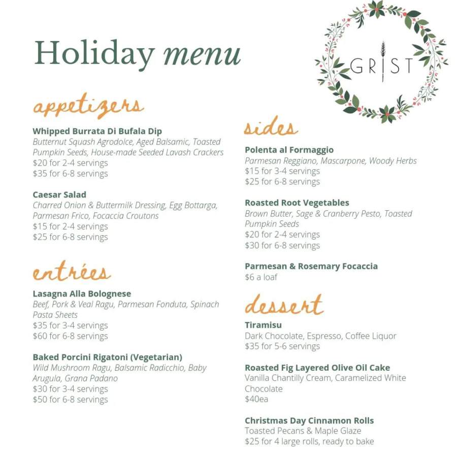 Christmas Menu Heat & Serve to be Picked up Dec 23 11am – 3pm
