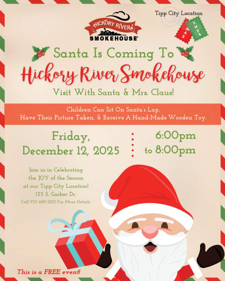 Celebrate the season with us at Hickory River Smokehouse! Santa & Mrs. Claus will be here December 12th, 6–8pm, for a FREE night of fun. Kids can meet Santa, get photos, and take home a handcrafted wooden toy. A cozy night of BBQ and holiday magic awaits!