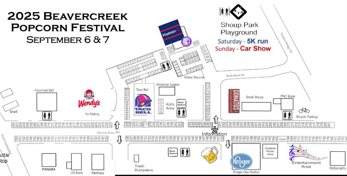 The Popcorn Festival is located at the intersection of Dayton-Xenia and North Fairfield roads.