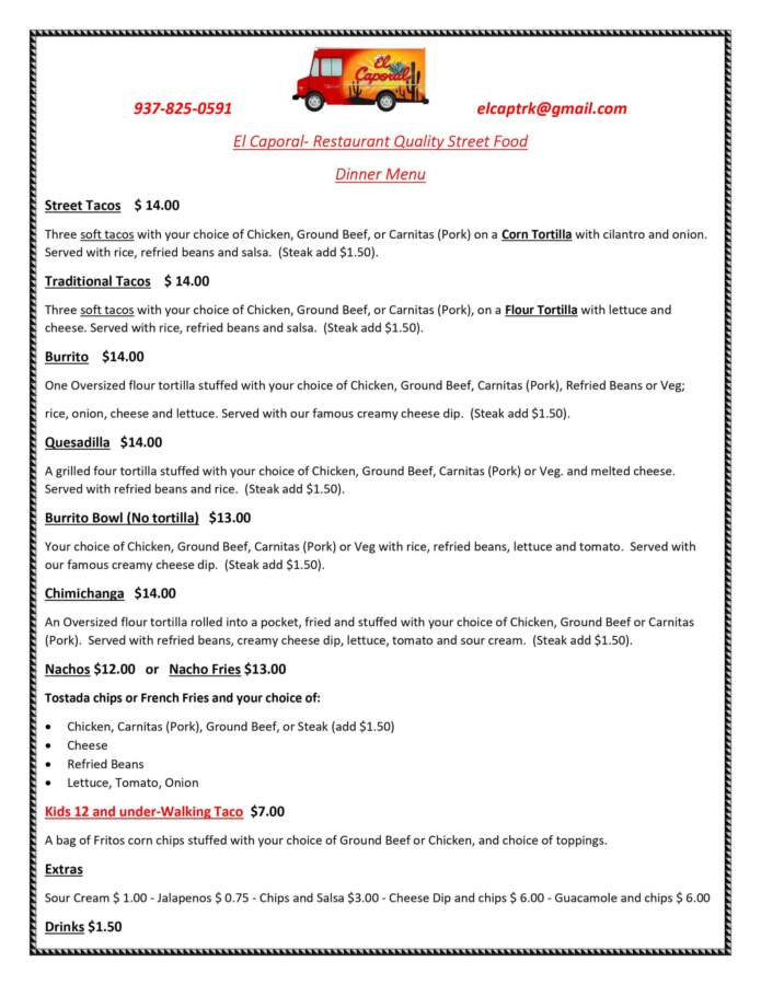 Partnership with the El Caporal Restaurants in Mason and Liberty to bring restaurant quality food to you!