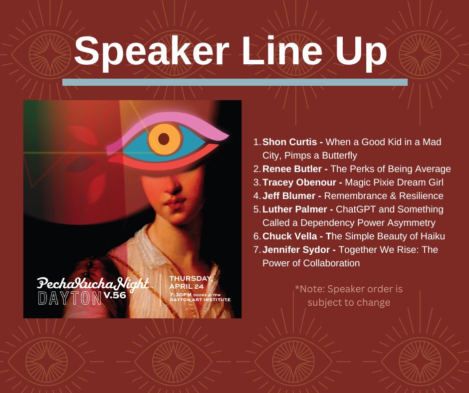 Join us for Dayton’s first PechaKucha Night of the year! We are so excited to have PK 56 at the beautiful Dayton Art Institute!