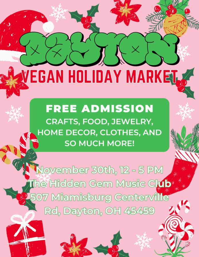 It’s finally happening again — the Dayton Vegan Holiday Market is back! Join us for a festive afternoon of shopping,...