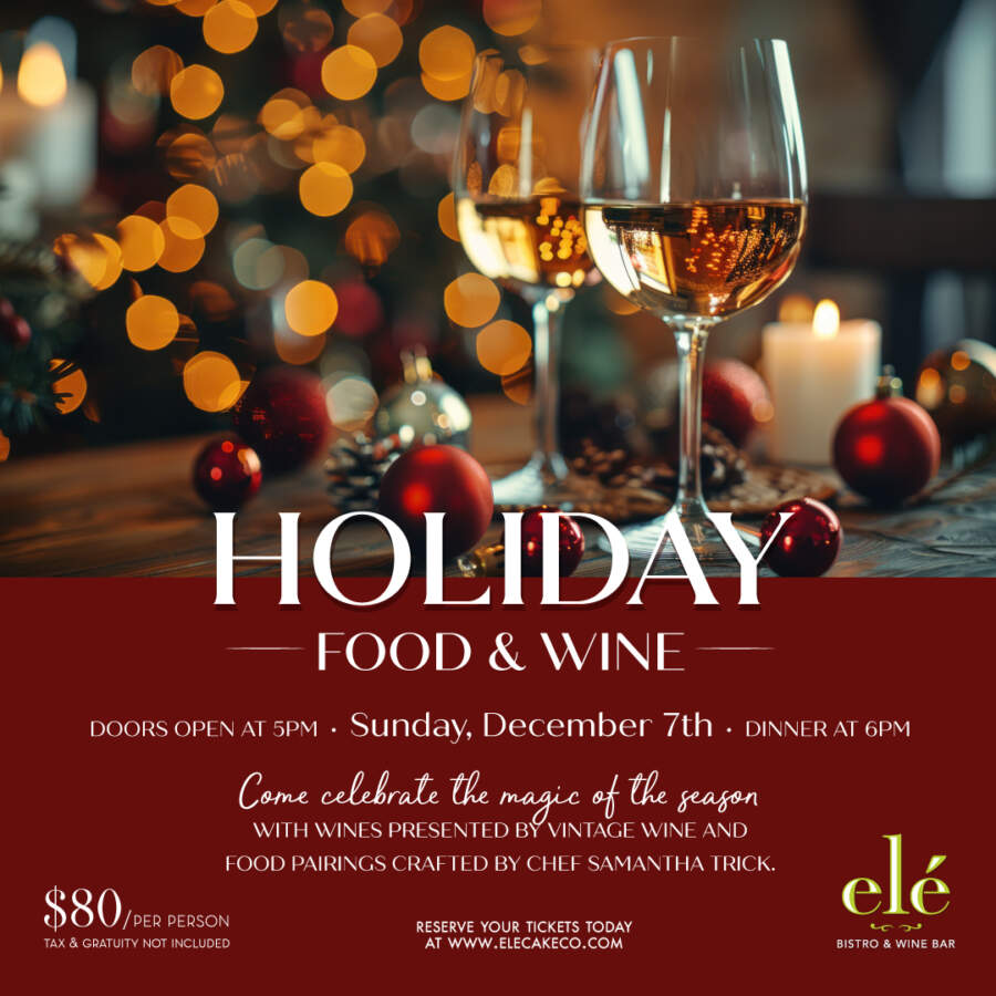 Celebrate the most wine-derful time of the year at elé Bistro & Wine Bar! Featuring four courses of holiday cheer...