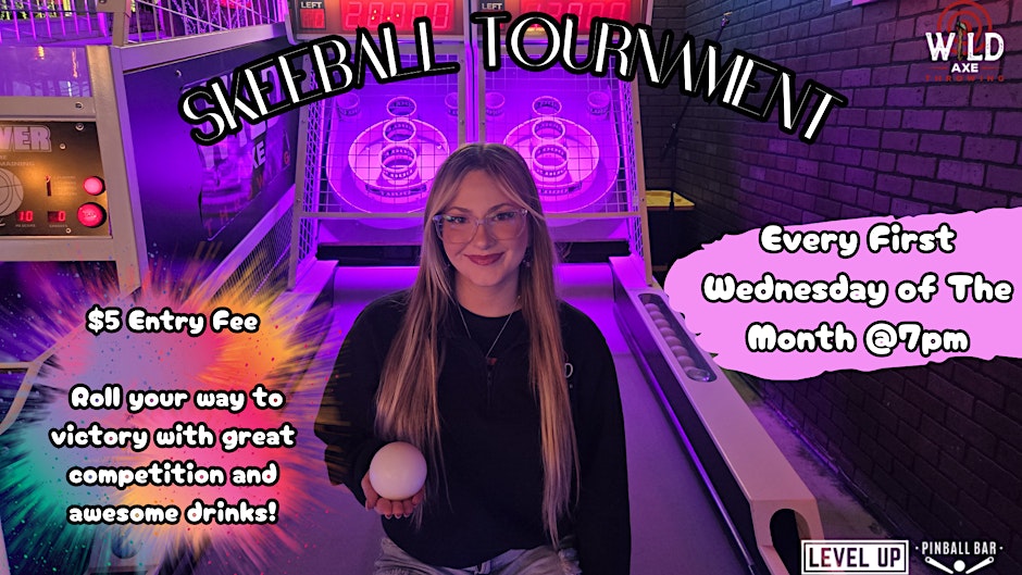**Skeeball Tournament – First Wednesday of Every Month!** Join us at **Level Up Pinball Bar** for our **monthly Skeeball Tournament...