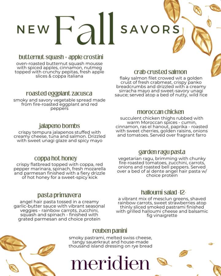 Executive Chef Adrian Madrigal Mendiola has just released the new fall menu for Centerville’s Meridien Uptown: