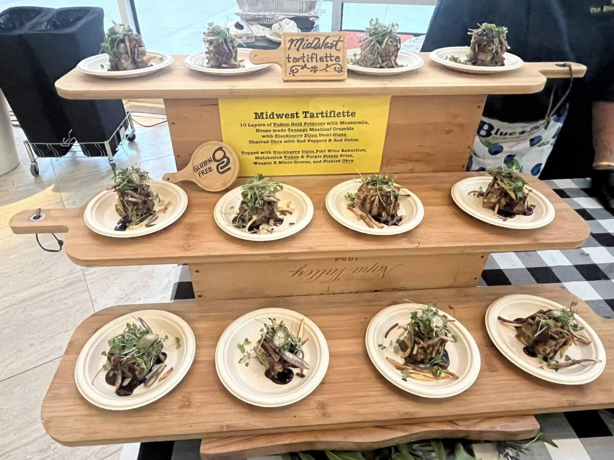 The judges selected Chef James Blythe from Otterbein’s fresh corn tamale, filled with shredded turkey, and wrapped in a fresh corn husk, topped with candied red and green cabbage and cilantro as their top dish, while the people’s choice was Chef Jacob Rodibaugh from Bistecca’s sausage meatball with with blueberry dijon glaze over a potato a potato rösti, served with a charred fresh corn and okra salsa.