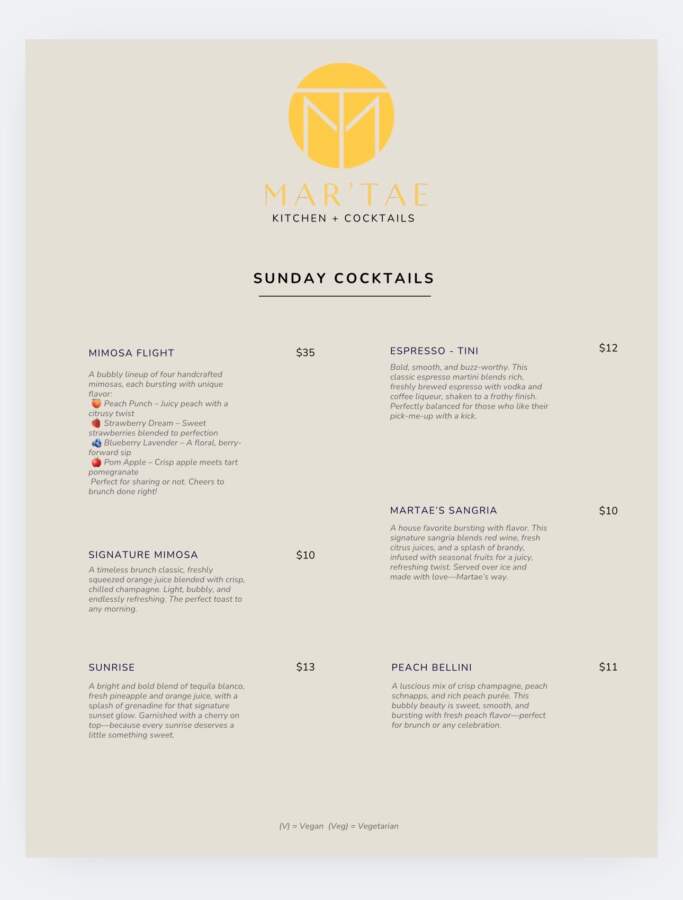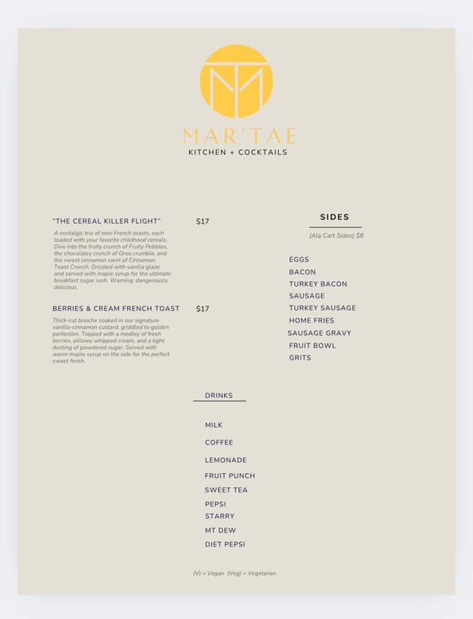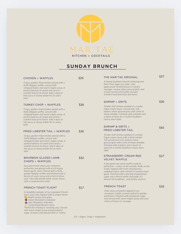 Mar’Tae Kitchen & Cocktails, Trotwood’s newest eatery, opens their doors for Sunday brunch today from noon -5pm. Opened in mid- November by siblings Tae Winston and Mark Lee, their goal is to offer elevated soul food and craft cocktails in the neighborhood they grew up in.