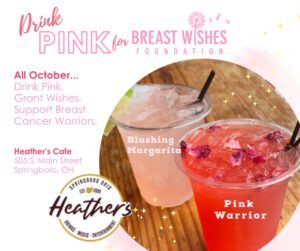 Throughout the month of October, local bars, restaurants, and cafes are turning their drinks pink in support of the Breast Wishes Foundation. Every time you order a featured Drink Pink beverage, a portion of the proceeds helps grant wishes to individuals living with breast cancer.