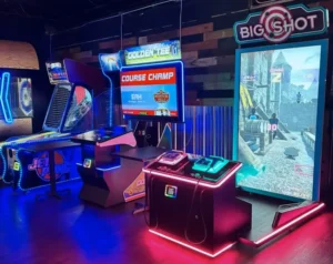 In their Arcade built for adults you’ll find pinball machines, racing games, shooting games, basketball, boxing, axe-throwing, beer pong, ping pong, Ski balland much more! From old school Touch Screen Games and pull tabs to the newest machines in Golden Tee Golf.