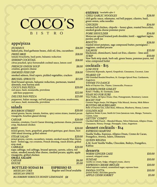 Chef Bryan Ondre of Coco’s Bistro has just released their fall winter menu: